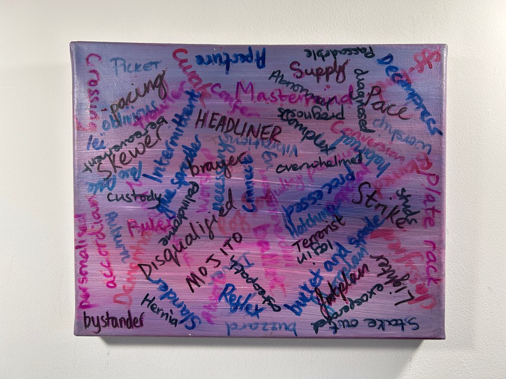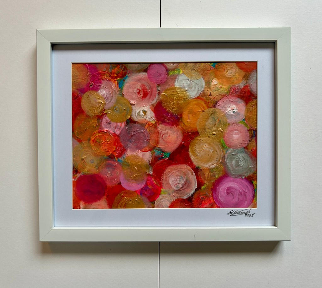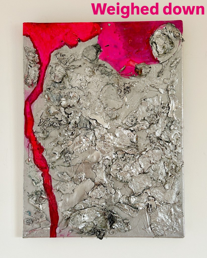 Trying to explain this in words is hard and definitely not my strength, so I decided to try and show this emotional rollercoaster that I and many other women are on, through my art. I have purposely used various sized canvases, framed some and not others and used colours/shapes that don’t sit well together in order to add to the uncomfortableness, which is how I have felt.